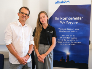 Foto rechts: Geschäftsführer Jörg Wandrey (li.) und Daria Protsko von der ALBAKOM GmbH